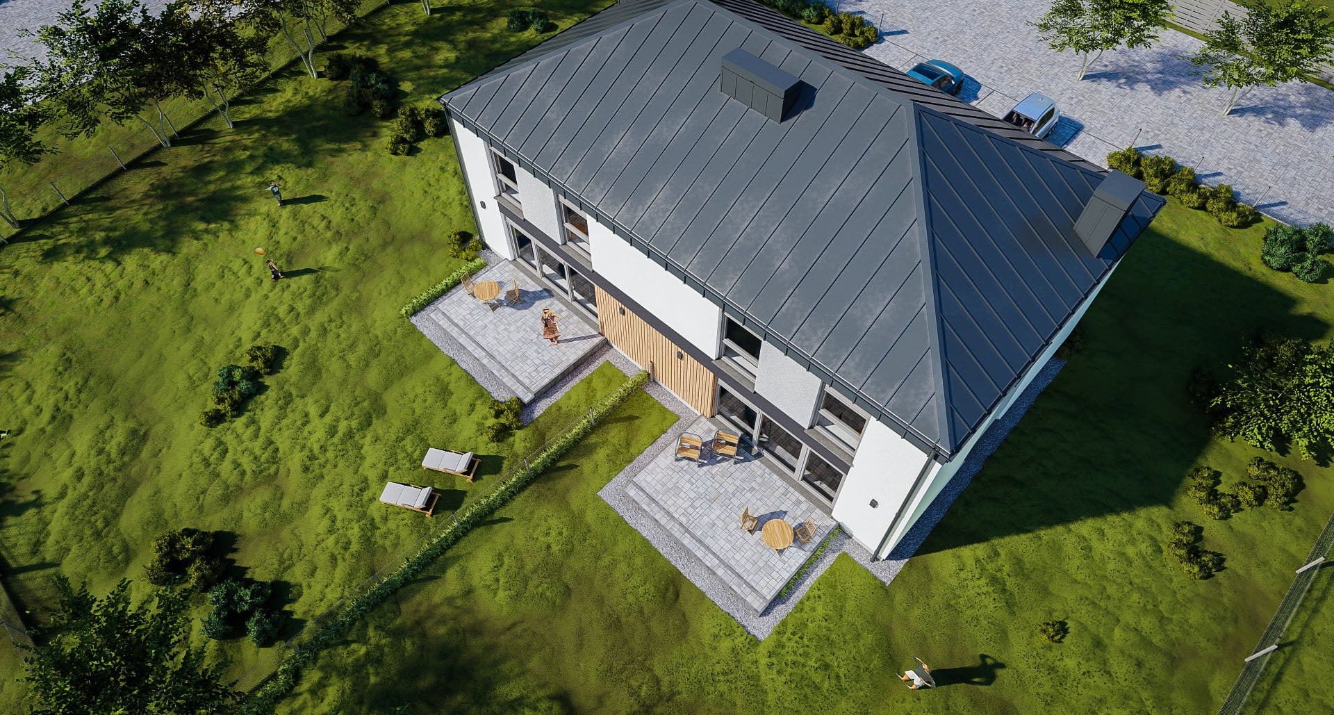 • pokrycie z blachy płaskiej łączonej na rąbek – kolor antracyt