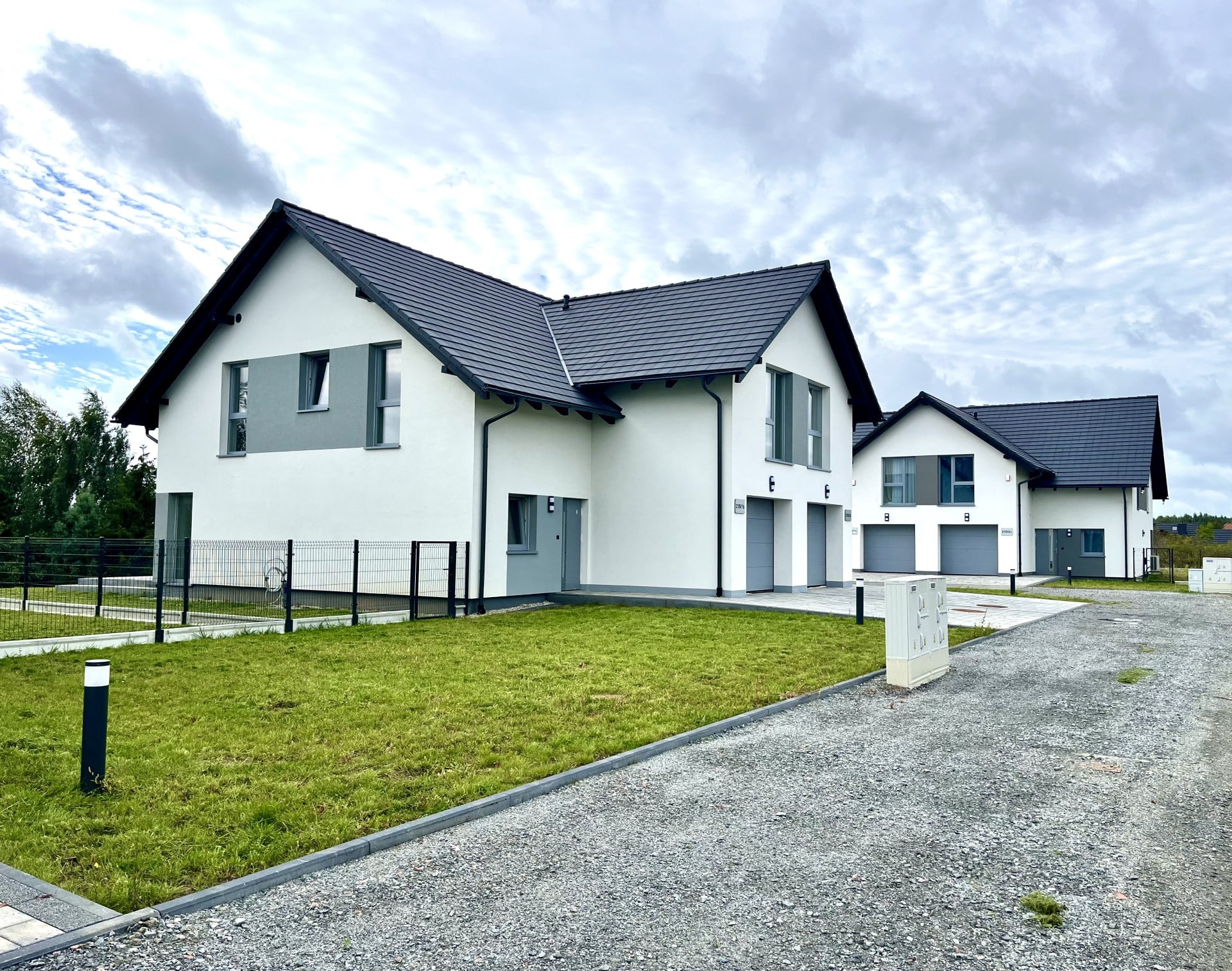 4 komfortowe domy jednorodzinne w zabudowie bliźniaczej – 8 przestronnych lokali mieszkalnych z przynależnymi dużymi ogrodami i podjazdami. Zdjęcia i opis domów znajduje się w zakładce Zakończone Inwestycje. Ostatnie budynki przekazaliśmy naszym klientom w 2022 roku.